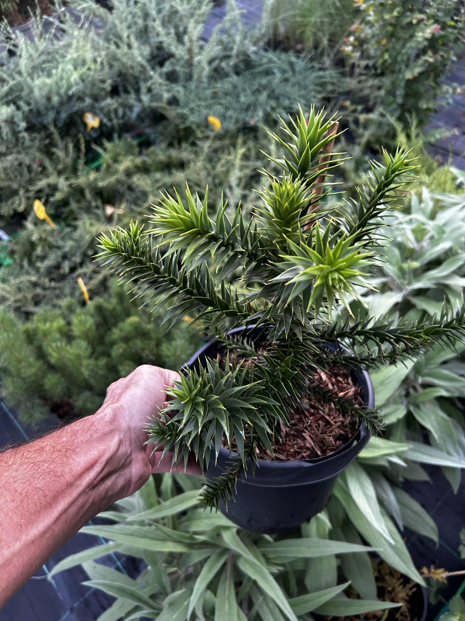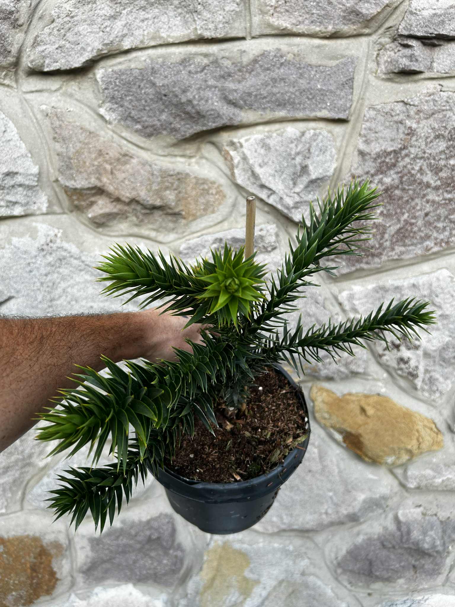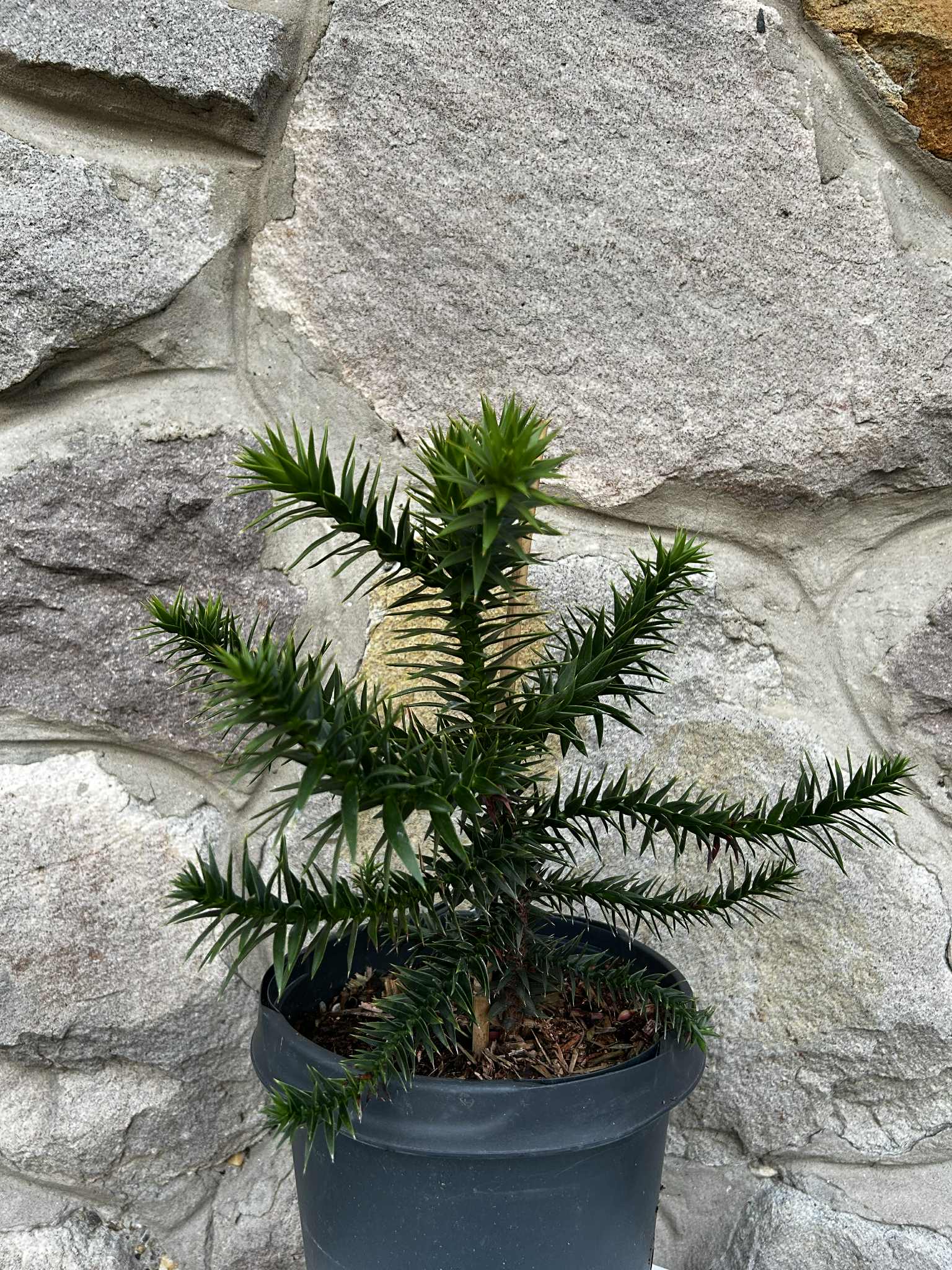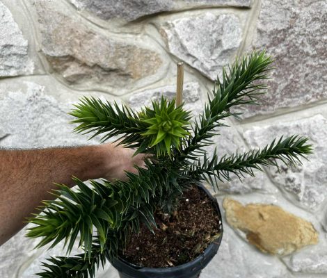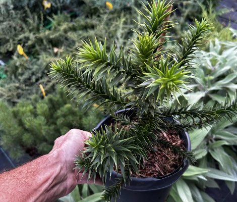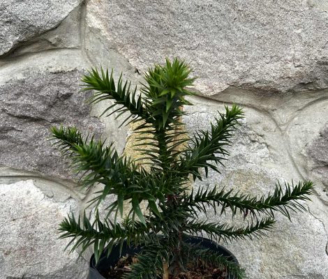 Opis: | Araucaria araucana, obično nazivana stablom zagonetke majmuna ili čilijskim borom, zimzelena je četinjača koja raste na šumovitim vulkanskim padinama do 1800 metara nadmorske visine u Andama u Čileu i Argentini. To je nacionalno stablo Čilea. Navodno ima najbolju zimsku otpornost od bilo kojeg stabla koje raste u područjima južno od ekvatora. U uzgoju obično naraste do 6-9 metara visine, ali u svom izvornom staništu može doseći 27-39 metara visine. Poznata je po svom jedinstvenom obliku. Stabla su mlada, labavo-piramidalna i otvorena, ali razvijaju krošnju nalik kišobranu s gubitkom donjih grana kako stare. Horizontalne, prema gore usmjerene grane pojavljuju se u pršljenovima oko debla s grančicama nalik užetu. Kora je sivosmeđa i rebrasta.