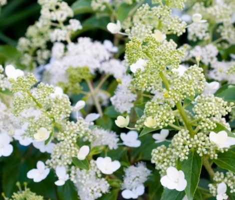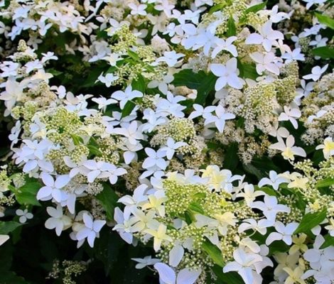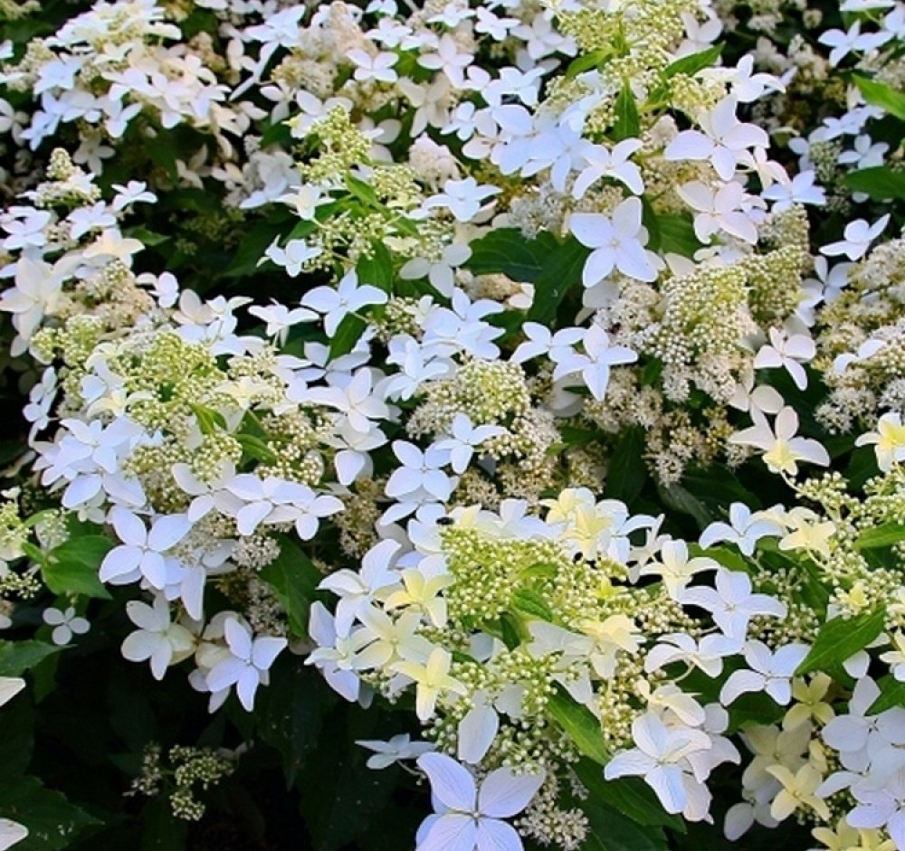 Velike, stožaste cvjetne metlice pojavljuju se od ljeta do jeseni i otvaraju se čisto bijele boje, prije nego što sazriju do nježno ružičaste. Rustikalni grm.