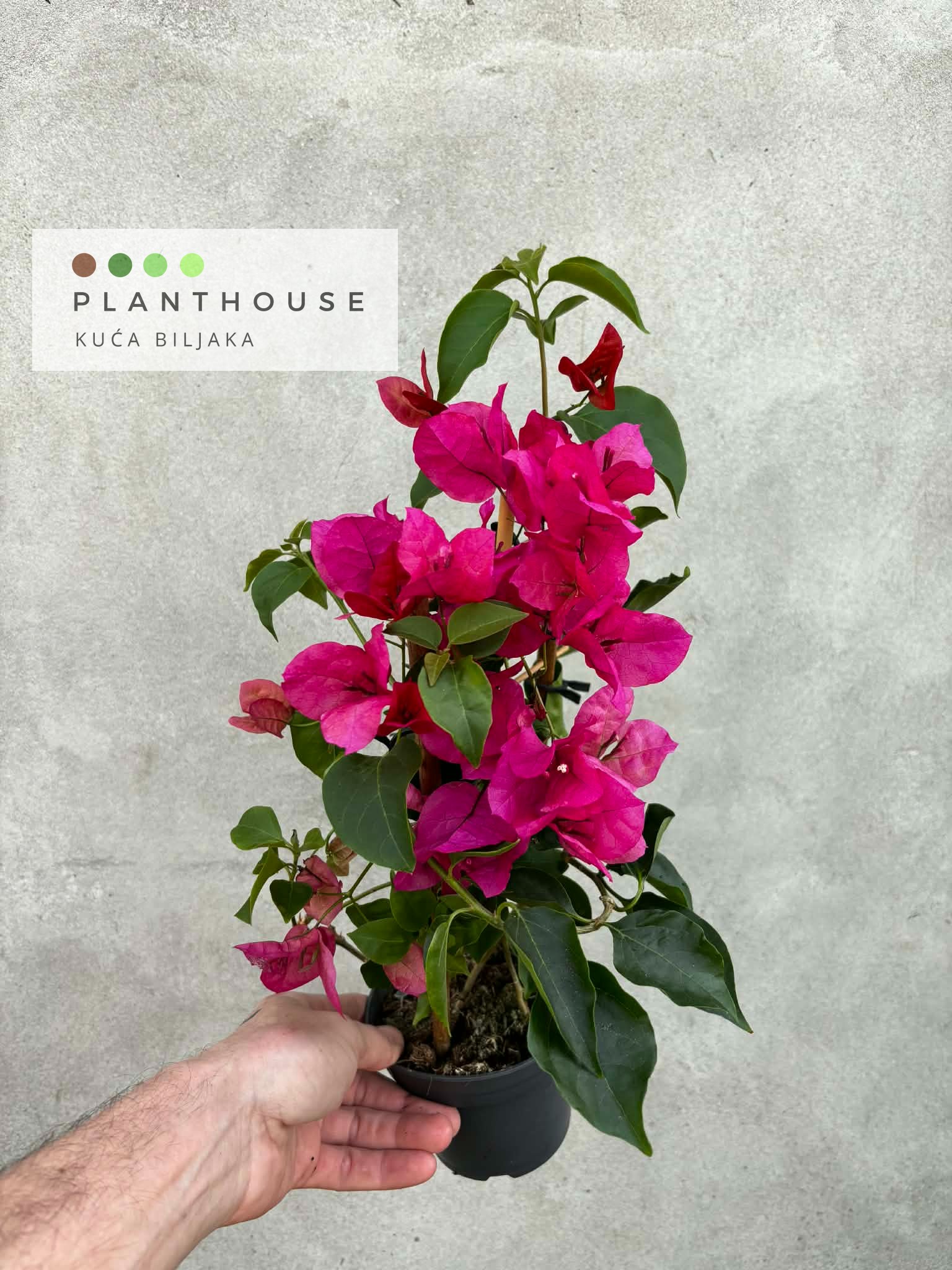 | Opis: | Bugenvilija je puzavica koja cvate od svibnja do prvih mrazeva. U vrtu može doseći visinu i preko 10 m, au posudi oko 3 m. Svi se divimo ovoj biljci kada posjetimo priobalna područja. Gotovo da nema ulice u kojoj nećete vidjeti barem jednu kuću koju krasi ova prekrasna penjačica. Bugenvilija ima u raznim bojama, od bijele, žute, narančaste do svih nijansi ružičaste, crvene i ljubičaste. Cvjetovi bugenvilije su sitni i neugledni, a ono što zaista krasi ovu biljku su rascvali listovi koje nazivamo „cvjetovi bugenvilije“. List ne gubi boju ni pri nižim temperaturama pa učinak pune cvatnje traje jako dugo.