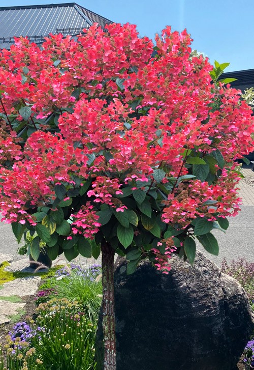 Opis: | Jedna od najranijih metlastih hortenzija koje procvjetaju i imaju vrlo dugu sezonu cvatnje, Hydrangea paniculata Wim’s Red je srednje velik do visok, listopadni grm s jakim, crvenim stabljikama i nazubljenim, jajolikim listovima srednje zelene boje; lišće je gusto i suzbija korov.