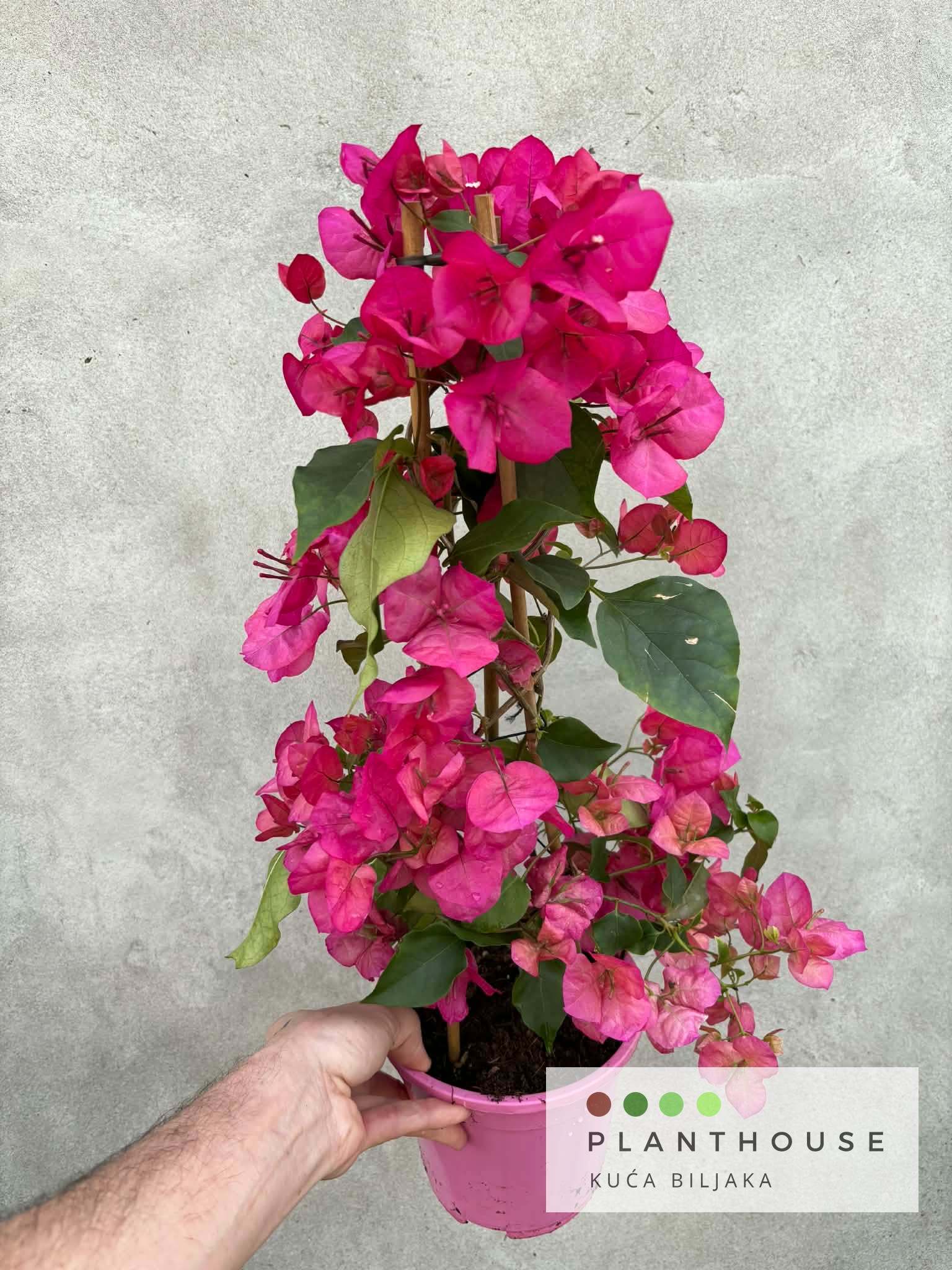 | Opis: | Bugenvilija je puzavica koja cvate od svibnja do prvih mrazeva. U vrtu može doseći visinu i preko 10 m, au posudi oko 3 m. Svi se divimo ovoj biljci kada posjetimo priobalna područja. Gotovo da nema ulice u kojoj nećete vidjeti barem jednu kuću koju krasi ova prekrasna penjačica. Bugenvilija ima u raznim bojama, od bijele, žute, narančaste do svih nijansi ružičaste, crvene i ljubičaste. Cvjetovi bugenvilije su sitni i neugledni, a ono što zaista krasi ovu biljku su rascvali listovi koje nazivamo „cvjetovi bugenvilije“. List ne gubi boju ni pri nižim temperaturama pa učinak pune cvatnje traje jako dugo.