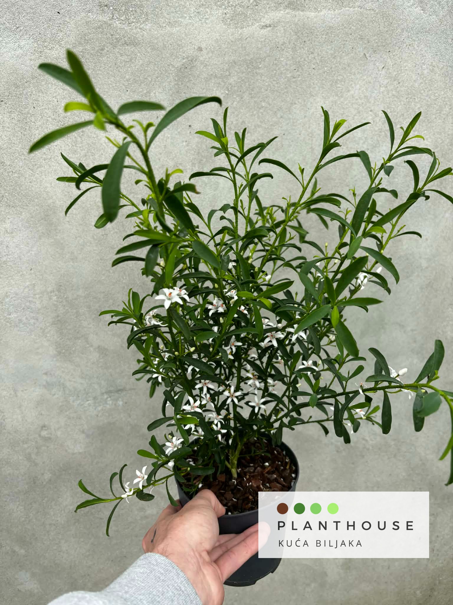Široko potencijalno razdoblje cvatnje od jeseni do proljeća, pupoljci razvijaju se u voštane bijele cvjetove u obliku zvijezde, dodajući sezonski interes i nježan miris. Popularna među cvjećarima zbog dugotrajnog cvata, Myoporoides ima stabljike koje su prekrasno opipljive s “prištićima”. Jednom uspostavljena, umjereno podnosi sušu i zahtijeva minimalno obrezivanje. Idealno za zimske vrtove i ljetne terase, dosegnut će podnošljiviju visinu i proširiti se do 2 m u velikim posudama, a mora se zaštititi od niskih temperatura i mraza. Kako se brinuti za Philotheca myoporoides: Ovaj australski grm najbolje je uzgajati u velikom loncu. Nakon cvatnje, lagano obrežite kako biste održali oblik i uklonili sav mrtvi ili oštećeni rast, izbjegavajući jako obrezivanje jer može smanjiti cvjetanje. Prihranite godišnje u proljeće uravnoteženim gnojivom sa sporim otpuštanjem kako biste podržali zdrav rast i cvjetanje.