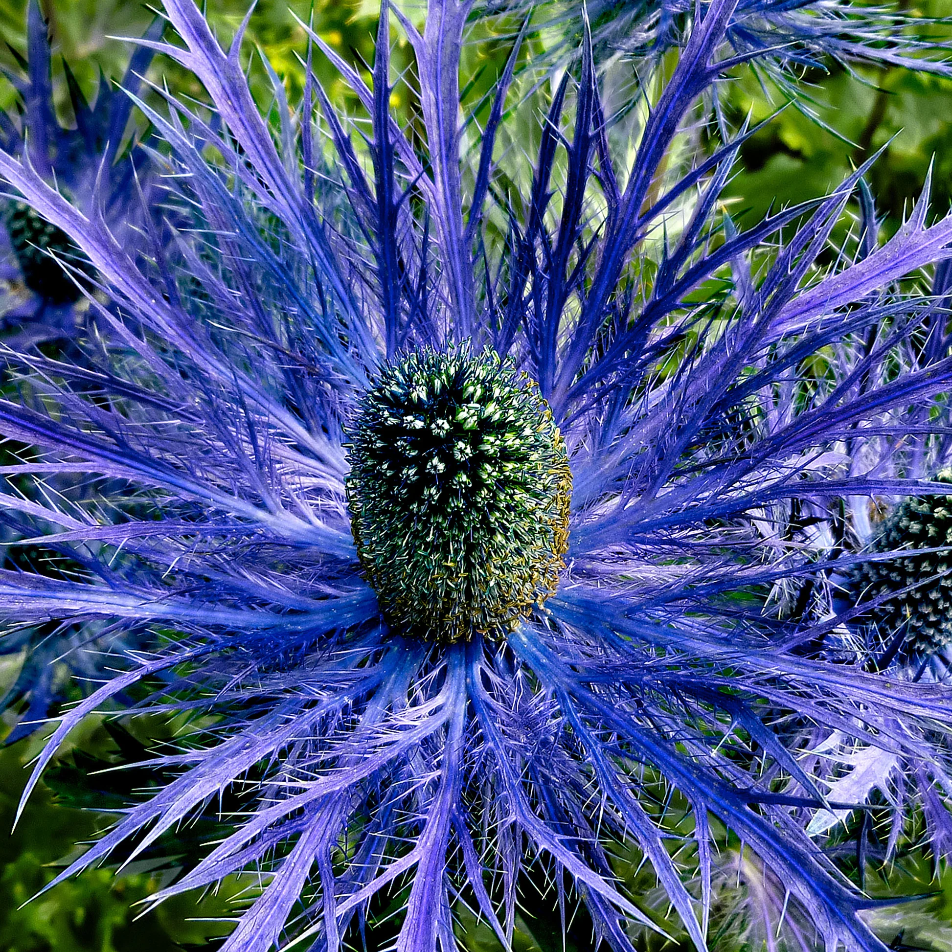 | Opis: | Eryngiumi čine upečatljiv dodatak suhim, sunčanim rubovima i šljunčanim vrtovima. Imaju cvjetove nalik na čičak, sastavljene od sićušnih cvjetova skupljenih u zbijeni grozd, okruženih šiljcima bodljikavih brakteja.
