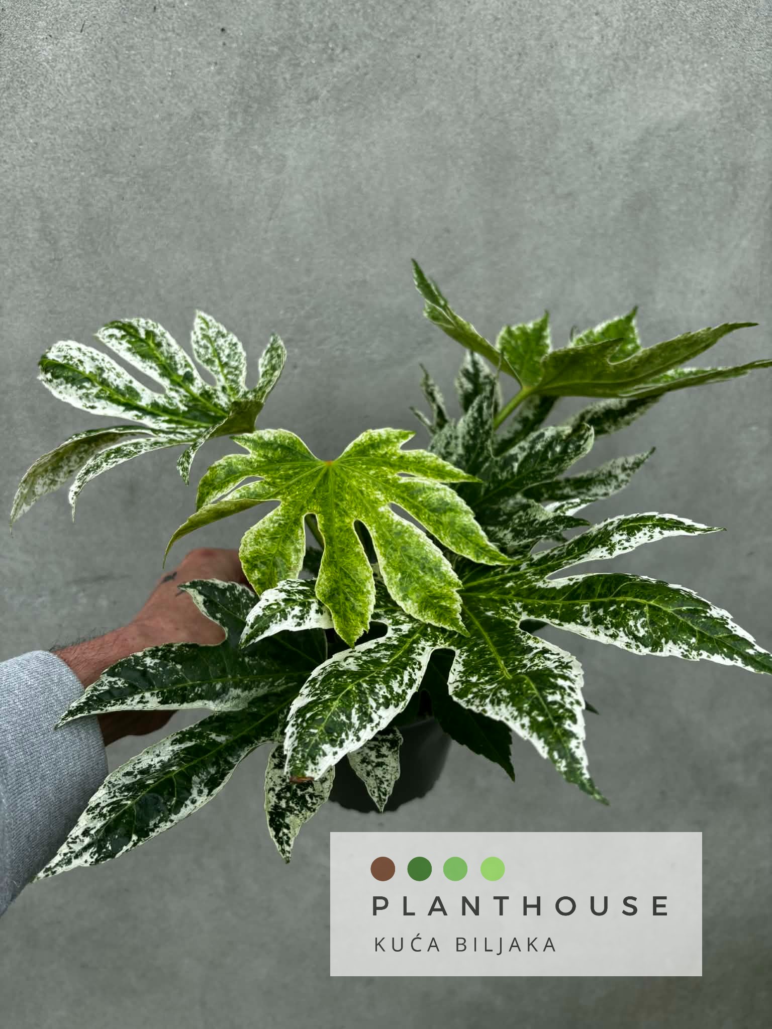 Grmoliki, zimzeleni grm naraste do 2 m visine. Tamnozeleni listovi su jako prošarani bijelom bojom, osobito na rubovima, ali se bijela šara ponekad može proširiti po cijelom listu. Završne grozdove bijelih cvjetova u jesen prate crne bobice.